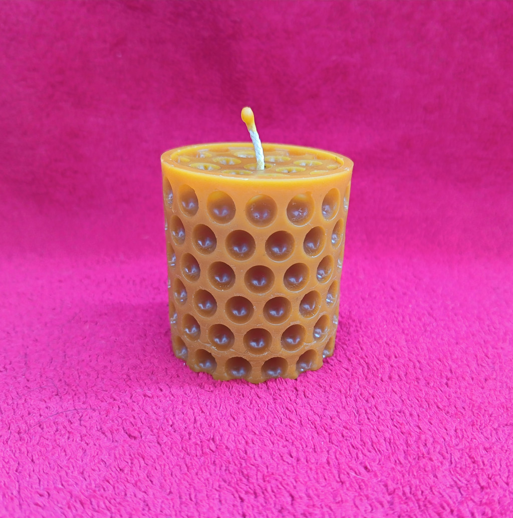 Mèhviasz gyertya természetes alapanyagokból. 7 cm x 5 cm 109 g
