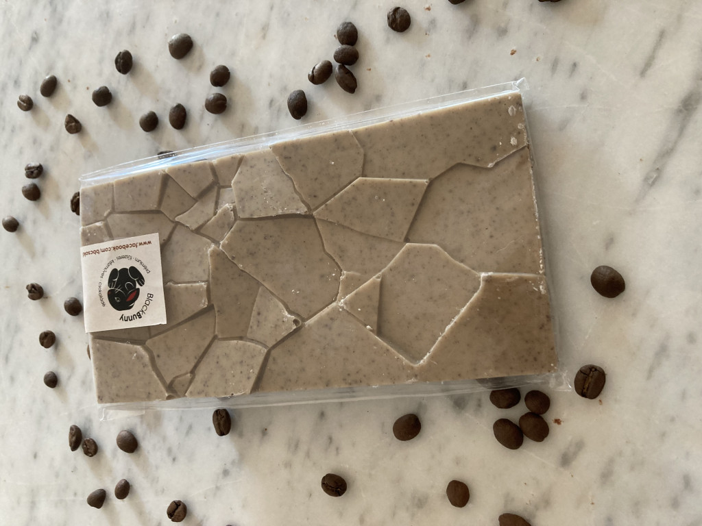Prémium fehércsokoládé, kávéval, 100% természetes alapanyagokból. Gluténmentes, kézzel készített finomság. Összetétel: fehércsokoládé (cukor, kakaóvaj, tejpor, emulgeálószer: szójalecitin, természetes vanília), instant kávé